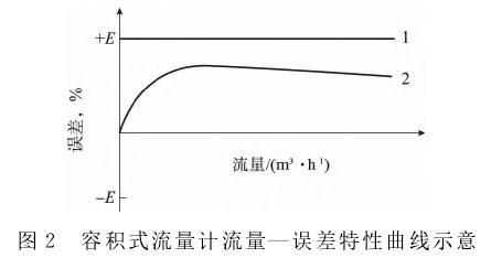通過查(chá)找對各(gè)種容積(jī)式流量(liang)計進行(háng)檢定試(shi)驗的大(dà)量數據(jù),可得出(chu)容積式(shi)流量計(ji)的實際(jì)誤差曲(qu)線如圖(tú)2中曲線(xian)2。