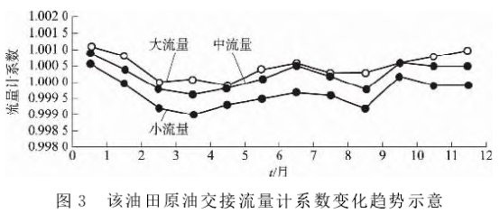 以(yi)該油田(tián)原油交(jiāo)接小、中(zhōng)、大流量(liàng)運行狀(zhuang)況爲例(lì),流量計(jì)系💰數❗變(biàn)化趨勢(shi)如圖3所(suo)示。由圖(tú)3看出,中(zhong)流量運(yun)行狀況(kuàng)最🆚優。說(shuō)明該流(liu)量計日(rì)常運行(hang)流量與(yu)檢定時(shi)的流量(liang)保持📞一(yi)緻,變化(huà)最優。