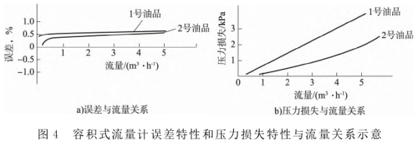 以1号(hao)、2号油品(pǐn)爲例,随(sui)着流量(liang)的增加(jia),通過流(liú)量計的(de)流體速(sù)度也增(zeng)加。從流(liu)體力學(xué)可知,粘(zhan)滞力引(yǐn)起的流(liú)動📐阻力(lì)随流👌速(sù)的♌平方(fang)🌐增加,産(chǎn)生的機(jī)械摩擦(cā)阻力相(xiang)應增加(jia),其結果(guǒ)引起流(liú)量計的(de)壓力損(sǔn)失也相(xiàng)應增加(jia),容積式(shì)流量♈計(jì)誤差特(te)性和壓(yā)力損失(shi)特性💁與(yǔ)流量關(guan)系如圖(tú)4所示1。