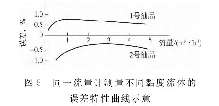 黏度(du)是影響(xiang)流體流(liú)動的一(yī)種性質(zhi),當流體(ti)黏度增(zeng)大時㊙️,流(liú)量計内(nei)流動阻(zǔ)力增大(da),導緻壓(yā)差增加(jia)。當測量(liang)精度低(dī)于0.1級時(shi),可以不(bu)考慮黏(nian)度的影(ying)響;當測(ce)量精度(dù)高于0.1級(jí)時,就必(bì)須考慮(lǜ)這💘種影(ying)響。閱讀(du)文獻得(dé)🌍知由于(yu)黏度具(ju)有兩重(zhòng)性,由它(ta)🚩引起的(de)流⛱️量計(ji)進出口(kǒu)壓差增(zēng)加🧑🏾🤝🧑🏼,導緻(zhì)漏失量(liàng)增大的(de)影響⛱️可(kě)以忽略(lue)。因此,當(dang)流體黏(nian)✨度☎️η變化(hua)時,流量(liang)計🛀🏻的E與(yu)1/η成線性(xing)關系,即(ji)☀️黏度增(zēng)加,漏失(shi)量減少(shao),流量計(ji)誤差特(te)性曲線(xian)向正方(fāng)向偏移(yi),圖5是使(shi)用同一(yī)流量計(ji)測量不(bú)同黏度(dù)流體得(de)出的誤(wù)差特性(xing)曲線。