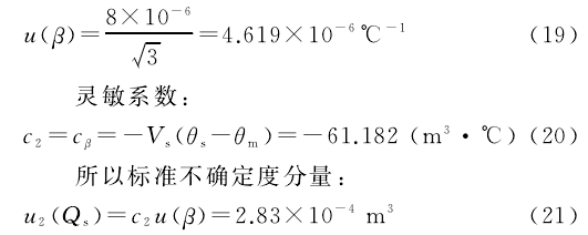 2)檢測(ce)用介質的(de)體積膨脹(zhang)系數β引人(rén)的标準不(bú)确定度分(fèn)量u2(Qs)