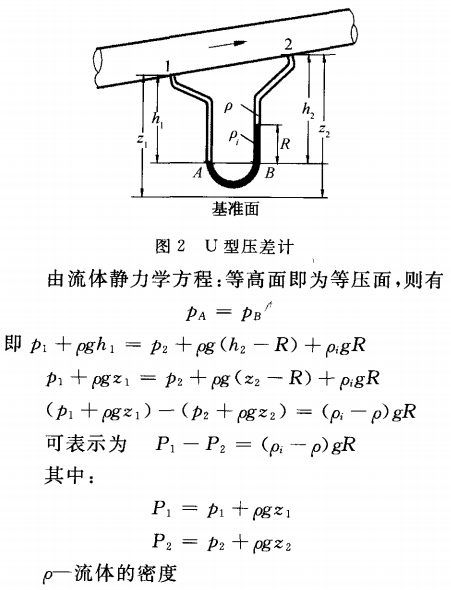可(kě)見,壓差的産(chan)生是由于局(ju)部阻力損失(shī)造成的,而不(bu)是因流道變(biàn)化由動能轉(zhuǎn)換而來的。那(na)麽,壓差指示(shì)值指示的是(shì)否是靜壓力(li)呢?我們先看(kàn)一看U型壓差(chà)計的測壓原(yuan)理。如圖2所示(shì)。U型壓差計測(cè)量均勻管💃内(nèi)流體作定态(tai)流動時1、2兩點(dian)的壓差。