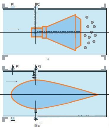 在同(tong)一密閉管道内(nèi),當壓力降低時(shi),速度會增加,當(dang)介質接近錐體(tǐ)時,其壓力爲P1,在(zai)介質通過錐體(ti)的節流區時,速(su)度會增加,壓力(li)會降低爲P2,如圖(tu)一所示,P1和P2都通(tōng)過V型錐形流量(liàng)計的取壓口引(yin)到