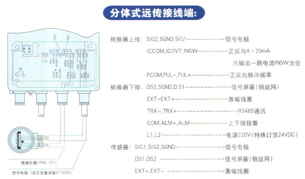 電磁流量(liàng)計若采用分(fèn)體安裝連接(jiē)的信号電纜(lan)采用定制的(de)專用電纜線(xiàn),電纜線越短(duan)越好。