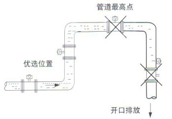 電磁(ci)流量計(jì)安裝位(wei)置介質(zhì)不滿管(guan)時,可采(cai)取擡高(gāo)流量☎️管(guan)後端管(guǎn)路的方(fang)法,使其(qi)滿管,嚴(yán)禁在管(guan)道最☁️高(gao)點和出(chū)水口安(ān)裝流量(liang)計。(見圖(tu))