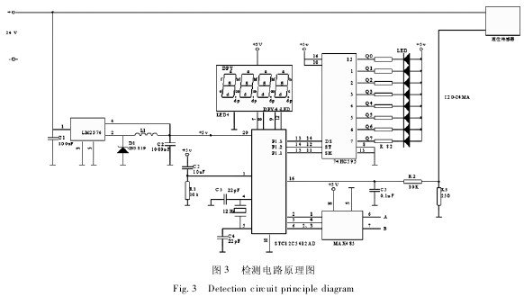 0引言 液位包括(kuo)液位信号器和(hé)連續液位測量(liang)兩種。液位信🔞号(hao)器是對幾個固(gu)定位置的液位(wèi)進行測量,用于(yú)液位的上、下限(xiàn)報警等;連續液(yè)位測量是對液(ye)位連續地進行(háng)測量,廣泛應用(yòng)于農田灌溉、定(ding)量施量、高爐沖(chong)渣水☂️位測量、環(huan)境監測等農業(yè)生産領域,具有(you)非常重要的👣意(yì)義。目前,對㊙️液位(wèi)測量的精度要(yao)求不😄僅愈來愈(yù)高,且♈需要測量(liang)儀能夠适應一(yi)些特殊環境,如(ru)高溫、高壓、強放(fang)射性及強腐蝕(shi)性等條件。液态(tai)肥🧑🏾🤝🧑🏼因其生産費(fèi)用低、肥效高、易(yì)吸收、節支增産(chan)效果顯著及施(shī)用過程中可以(yǐ)根據需要加入(ru)土壤所缺🌈少的(de)植物營養元🔱素(su)等優勢迅速得(de)到了廣泛應用(yòng)。而變量施肥作(zuo)爲農業的🍉重要(yào)部分,其技術基(jī)礎就是對液肥(fei)液位的準确控(kong)制。目前市場上(shàng),液位控制系統(tǒng)大緻🏃🏻♂️可分爲以(yǐ)下兩種: 1)機械式(shi)控制系統。機械(xiè)式控制系統結(jie)構簡單、成本低(di)🔞廉;但這種控制(zhi)裝置故障多、誤(wu)動作多,且隻能(neng)單👣獨控🐕制,與計(jì)算機進行通🐕信(xin)較難實現。 2)交流(liu)調壓/變頻調速(su)控制系統。該系(xi)統是通過安裝(zhuang)在⁉️水泵出口管(guǎn)道上的壓力傳(chuan)感器,把出口壓(yā)力變成标準工(gong)業電☎️信号的模(mó)拟信号,經過前(qian)置放大、多🙇♀️路切(qiē)換、A/D變換成數字(zì)信号傳送到單(dān)片機,經單片機(ji)運算與給定量(liàng)的比較,進行PID運(yùn)算,得出調📱節參(can)量;經🌂由D/A變換給(gěi)調壓/變頻調速(sù)裝置輸入給定(ding)端,控制其☎️輸出(chū)電壓變化,來調(diao)節電機的轉速(su),以達到控制水(shui)位的目的。 本文(wén)以液态施肥機(jī)爲依托,針對一(yī)定體積的液肥(fei)進行液✔️位試驗(yan),通過以單片機(ji)和投入式液位(wei)計爲主要硬件(jiàn)資源設計硬件(jiàn)電路,畫出相應(ying)的軟件流程圖(tú)🔅進行測試。數據(jù)分析驗證表明(ming):該傳感器在液(yè)肥液位測量中(zhong)安裝維護方便(biàn),能适應液肥這(zhe)種特殊環境,其(qi)容量和液位高(gāo)度的測量誤差(chà)也滿足實際要(yào)求。 1系統工作原(yuan)理及組成 微壓(ya)式液位計采用(yòng)的是壓力敏感(gan)元件實現力-電(diàn)轉換🆚。傳感器✊的(de)液位量程是0~1.3m,且(qiě)這段量程液位(wei)所對應的深度(du)🛀🏻約合壓力🈲相比(bi)其他要小很多(duo),因而稱其爲“微(wei)壓式”。本系統是(shì)所選的正是微(wēi)壓式傳感器,它(ta)🙇🏻将液位信号轉(zhuǎn)換爲4~20mA标準電信(xin)号輸出。 若設所(suǒ)測液體密度爲(wèi)ρ,液位高度爲h,大(da)氣壓爲ρ0,重力✉️加(jia)速度💯爲g,則液體(tǐ)所受壓力p=ρgh+ρ0。這時(shi),爲抵消大氣壓(yā)力變化所帶來(lái)的測量誤差,傳(chuán)感器變送器部(bu)分采用導氣電(diàn)纜将大🐅氣壓力(li)ρ0引入敏感元件(jiàn)的負壓腔,進而(ér)使p=ρgh。顯然,若已知(zhī)液體密度,通🈚過(guo)測取壓力p就可(kě)換算出相應的(de)液位高度。 1.1單片(piàn)機選型 該系統(tong)結構相對簡單(dan)、運行速度快,考(kao)慮到功能和成(chéng)本兼✍️顧,采用以(yi)擴展性51系列單(dān)片機STC12C5412AD爲核心控(kòng)制元件。該芯📧片(pian)具🔆有12kB用😍戶可自(zì)行安排的FLASH及FEPROM空(kong)間比例;在同樣(yàng)的工作頻率下(xia),平均指令運算(suàn)速度是普通🍉8051的(de)8~12倍[4],滿足系統對(duì)數據處理的要(yao)求,且掉電模式(shì)可由外部中斷(duàn)喚醒,适用車⛷️載(zai)信息系統。系統(tǒng)設計方💜案圖如(ru)圖1所 1.2投入式液(ye)位計選型 其基(ji)于所測液體靜(jing)壓與該液體的(de)高度成比例的(de)原理,再将靜壓(yā)轉換爲電信号(hào),實現非電量到(dào)電量的變換,利(lì)用這一特性來(lái)完成對液位的(de)測量。主要🙇♀️技術(shu)參數如下:量程(cheng)1.3m,精度0.5%Fs,電壓18~36VDC,輸出(chū)4~20mA。 其優點包括:①能(neng)實時測量罐内(nèi)各點液位;②直流(liú)4~20mA标準🙇🏻電流信号(hao)輸出;③密封性好(hao),測量元件不與(yu)液肥直接接觸(chu),避免了液肥對(dui)元件的腐蝕。 2硬(ying)件電路設計 2.1電(dian)源電路設計 電(diàn)源電路圖如圖(tú)2所示。圖2中,爲了(le)保證液位傳感(gǎn)器能🔴獲得24V的直(zhi)流供電,選用具(ju)有DC-DC單片控制電(diàn)路功能的MC34063芯片(piàn),片内包含有🎯溫(wen)度補償帶隙基(jī)準源,能輸出1.5A的(de)開關電源,且是(shi)使用最少的💃🏻外(wài)接元件構成的(de)升壓變換器、降(jiàng)壓變換💚器和電(diàn)源反向器[5]。 本系(xi)統電源電路采(cai)用具有升壓轉(zhuǎn)換作用的MC34063芯片(pian),與電感L、二⭕極管(guan)D3、三極管TIP122一起構(gòu)成電源電路。若(ruò)TIP122導通時,+12V的🌈輸入(rù)🚶電壓經采樣限(xian)流電阻R1、R2,流經電(diàn)感L,随着電♻️感L電(diàn)流增加,其兩端(duān)進行儲存能量(liang)。此時,二極管D3是(shi)防止電容C3對地(di)放電🈲,并由電容(róng)🎯C3向負載供電;若(ruo)TIP122斷開時,電感L及(jí)12V的輸入電壓對(duì)電容C3充電的同(tóng)時電容C3對負載(zai)供電,負🛀載☂️電壓(ya)穩定在+24V,穩壓的(de)負反饋信号是(shì)電阻R7、R8的分壓輸(shu)入到MC36063的5腳。 2.2檢測(cè)電路設計 硬