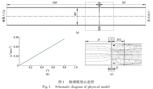 圖1爲孔(kong)闆流量(liàng)計的物(wù)理模型(xíng)示意.根(gen)據标準(zhǔn)孔闆🏃♀️流(liu)量計的(de)安裝,圖(tu)1a中,上下(xià)遊直管(guǎn)段長分(fen)别取10D和(hé)5D作爲穩(wen)定直管(guǎn)段.其中(zhōng)上下遊(yóu)管内徑(jìng)D取100mm,孔闆(pan)厚度δ取(qǔ)3mm.
