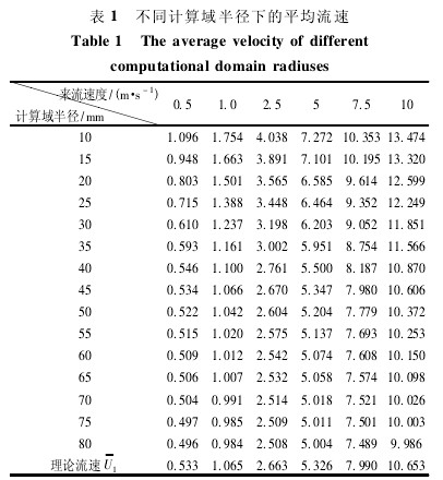 取計算域半徑(jing)在 10 ~ 80 mm 的範圍内,通(tōng)過GAMBIT 軟件分别建(jiàn)立模🔴型🍉,再由❗ FLUENT 軟(ruǎn)件分别進行仿(páng)真,得出在不同(tóng)半徑的計算域(yù)内所對應的體(tǐ)積加權平均流(liu)速,如表 1 所示。