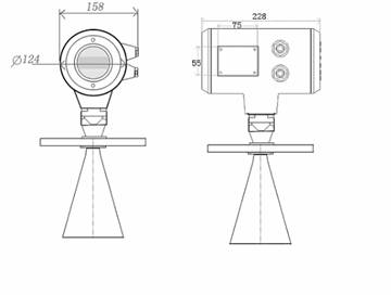 雷達傳(chuán)感器通過導波(bo)管或旁通管進(jin)行測量,測量管(guan)起到導波作用(yòng)。下面是一個測(ce)量管(導波管的(de)構造圖)