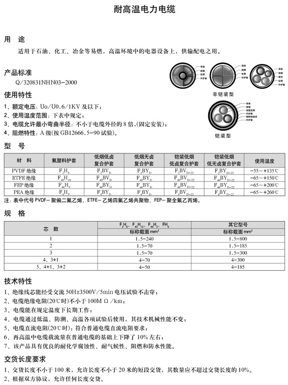 氟塑料(liào)絕緣和護(hù)套耐高溫(wēn)電纜