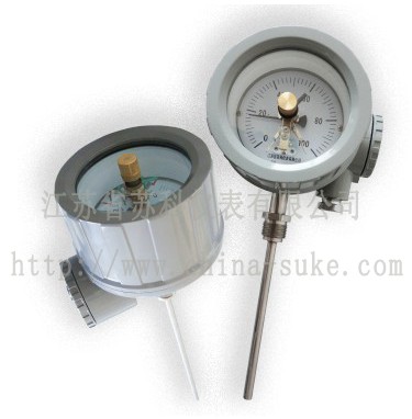 WSSX-B系列隔(gé)爆雙金(jīn)屬溫度(du)計 可以(yǐ)直接測(ce)量生産(chan)現場存(cún)在碳化(hua)物等爆(bao)炸物各(gè)過程中(zhōng)🏒的🧑🏽🤝🧑🏻-80~+500℃範圍(wei)内液體(tǐ)、蒸汽和(he)氣體介(jie)質以及(ji)固體表(biǎo)面測溫(wēn)。