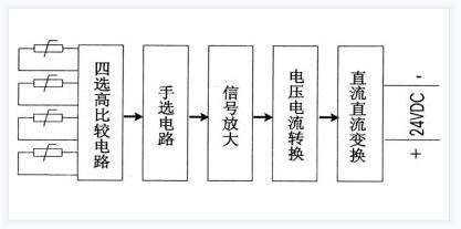 的(de)測量信(xin)号通過(guò)輸入電(dian)路(選擇(ze)高信号(hao))或選點(diǎn)輸入電(dian)路選中(zhōng)📱某一路(lu)信号,該(gāi)信号通(tōng)過放大(da)和電壓(yā)/電流(V/I)轉(zhuǎn)換單元(yuan)将放大(da)器的輸(shū)出電壓(ya)轉換爲(wei)4~20mA恒定電(diàn)流輸出(chū),原理框(kuàng)圖如✂️下(xia)圖所示(shi):