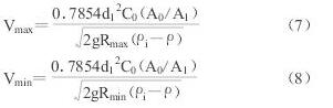 當(dang)管路上(shang)已經裝(zhuang)有标準(zhǔn)孔闆流(liú)量計時(shi),需要計(ji)算孔闆(pǎn)流量計(jì)允許的(de)流量範(fan)圍及校(xiào)核Re值,有(yǒu)時符合(he)讀數允(yun)許相對(duì)誤差的(de)U形壓差(chà)計最小(xiǎo)刻度所(suo)對應的(de)流量下(xià)管内流(liú)體的Re值(zhí)達不到(dào)标準孔(kǒng)闆流量(liàng)計的臨(lin)界雷諾(nuò)值(即Remin< Rec)時(shi),其Vmin則用(yòng)下式計(ji)算: